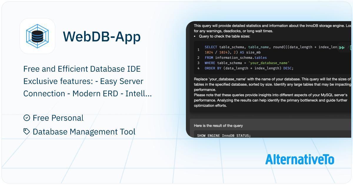 WebDB-App: Free Efficient Database IDE. Featuring Server Discovery, ERD ...