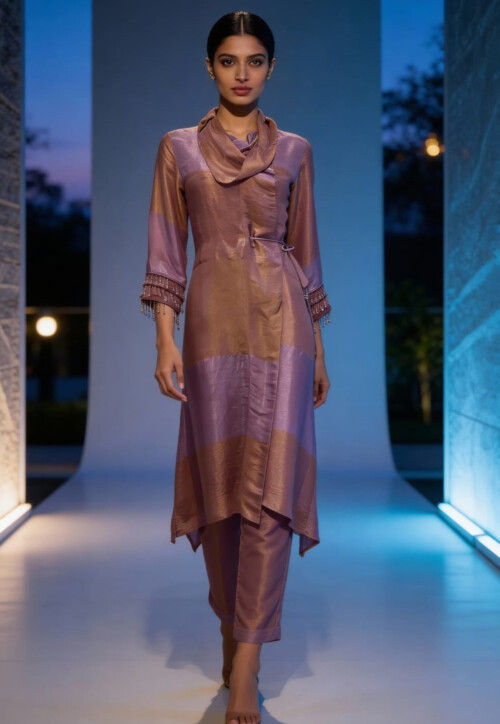 Buy Woven Art Silk Jacquard A Line Kurta Set in Purple Online : TKL574 ...