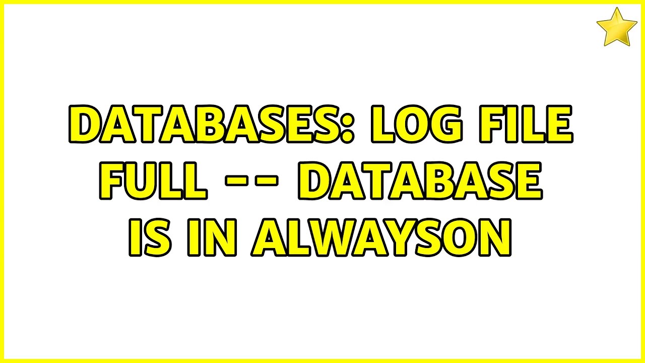 Databases: Log File Full -- Database is in AlwaysOn - YouTube
