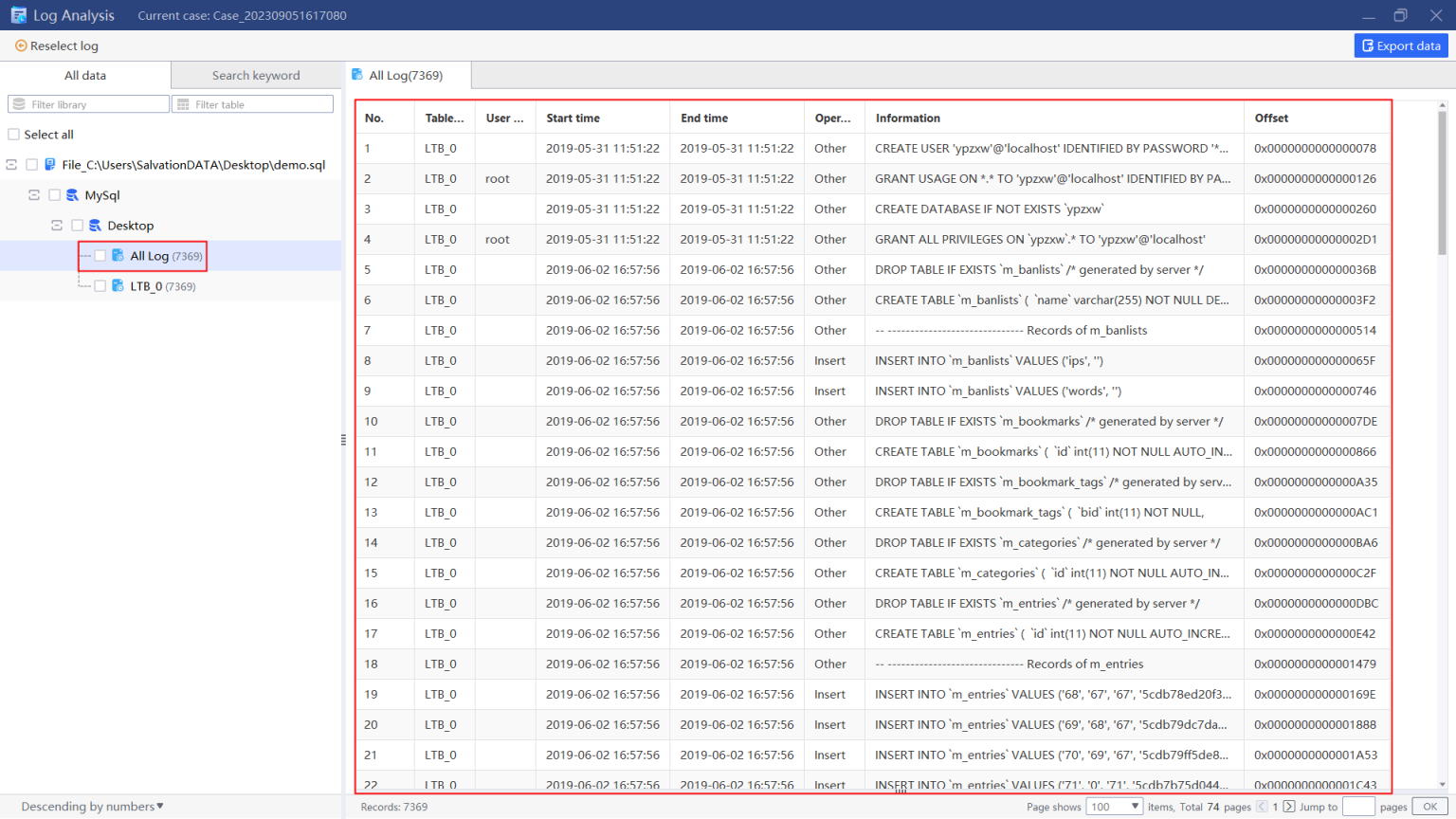 Snapshot of the Log Files Database | Download Scientific Diagram
