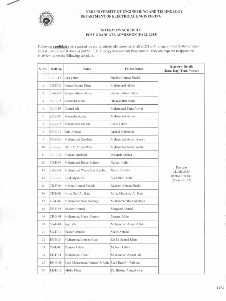 Interview Schedule of Post Graduate Admission Fall-2025 | PDF