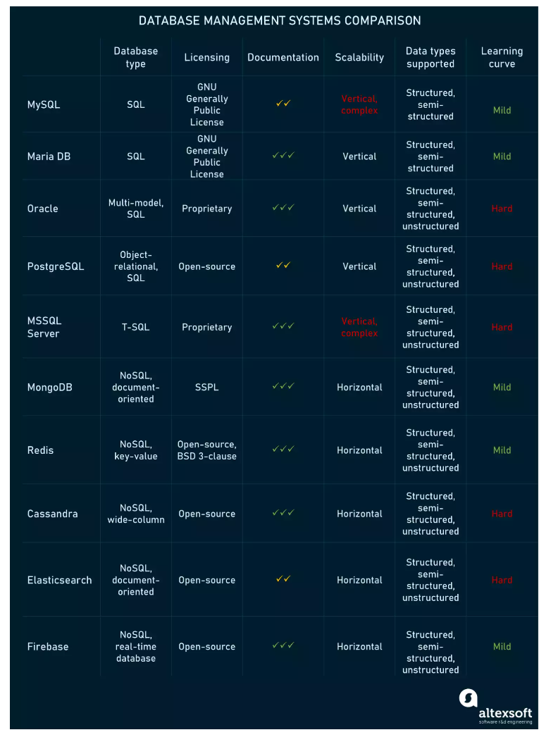 Solved DATABASE MANAGEMENT SYSTEMS COMPARISON - Create a | Chegg.com