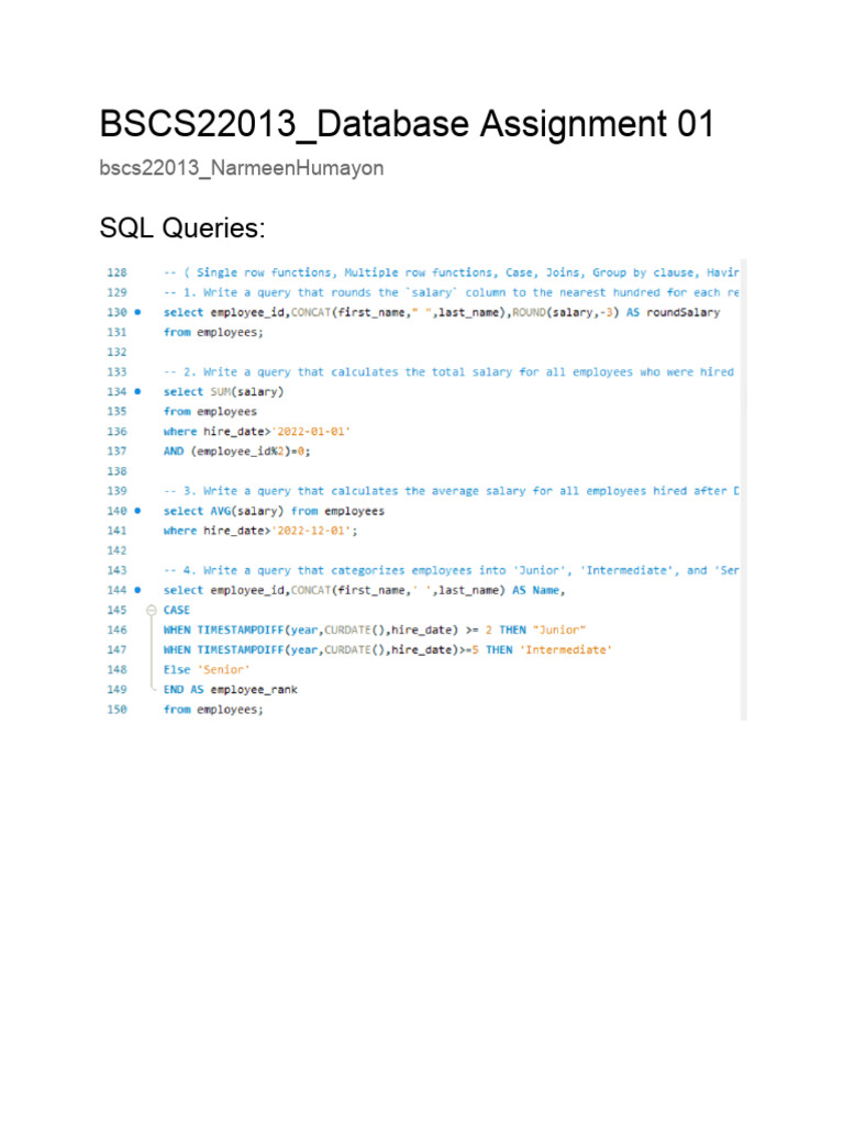 Database Assignment 2 | Assignments Database Management Systems (DBMS ...