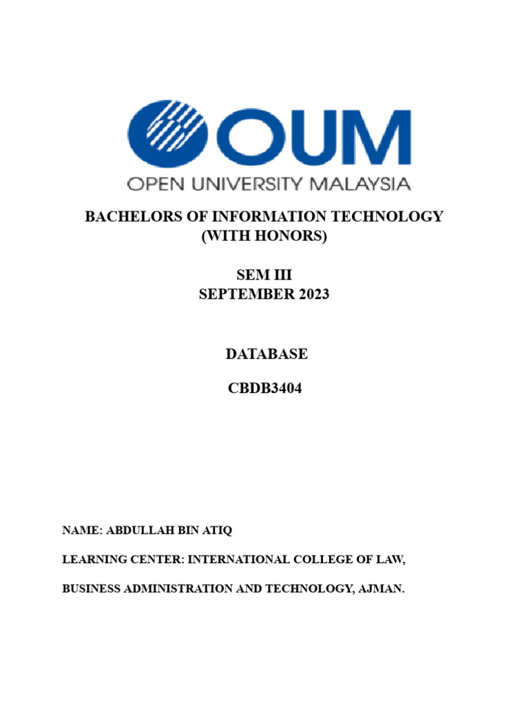 Database Assignment (SEM3) | PDF | Databases | Relational Database
