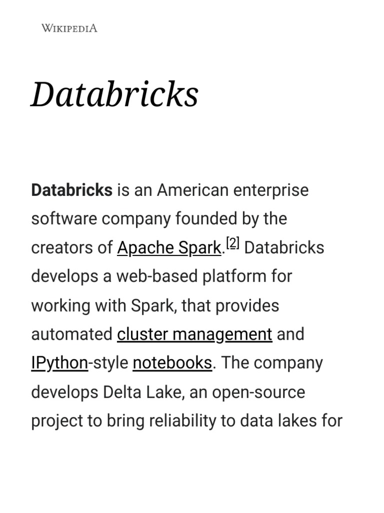 Databricks - Wikipedia | PDF | Computing | Information Technology