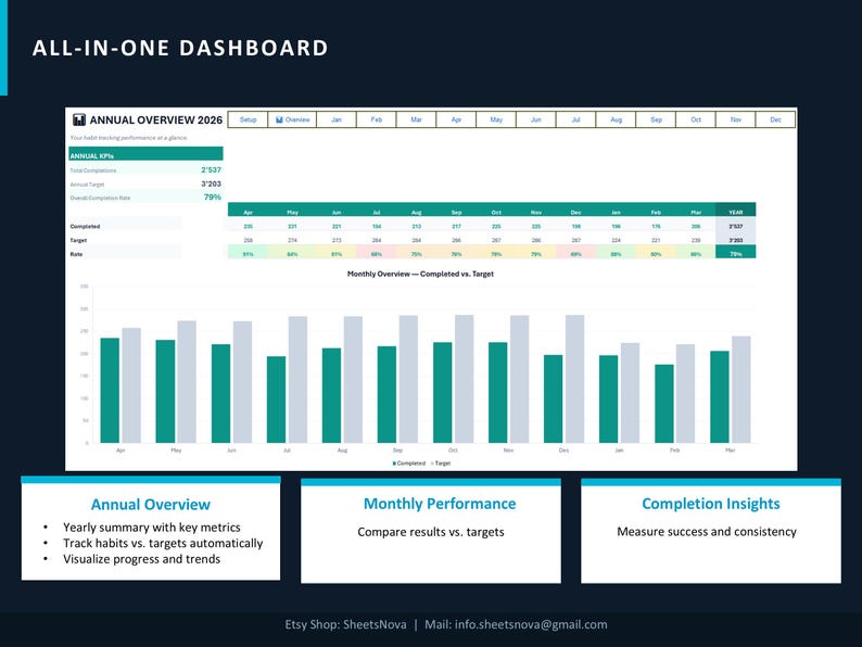 Annual Habit Tracker Excel Template | Annual Goal Planner ...