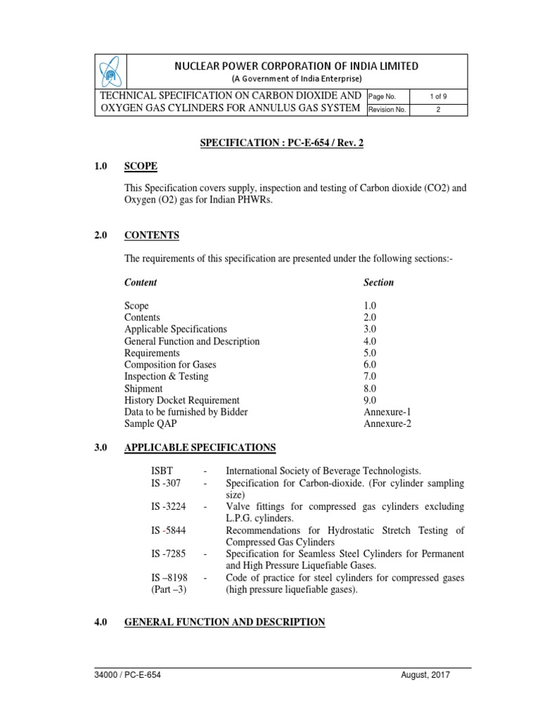 CO2 and O2 Cylinder Specs for PHWRs | PDF | Nitric Oxide | Carbon Dioxide