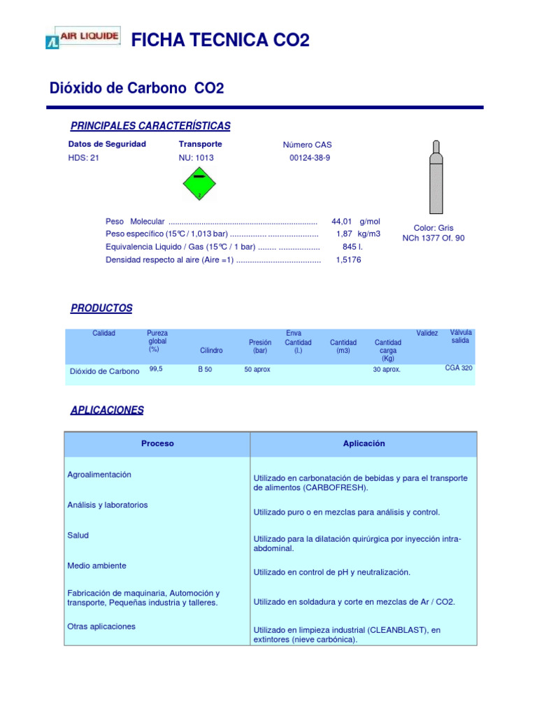 Ficha Técnica del Dióxido de Carbono CO2 | PDF | Dióxido de carbono | Gases