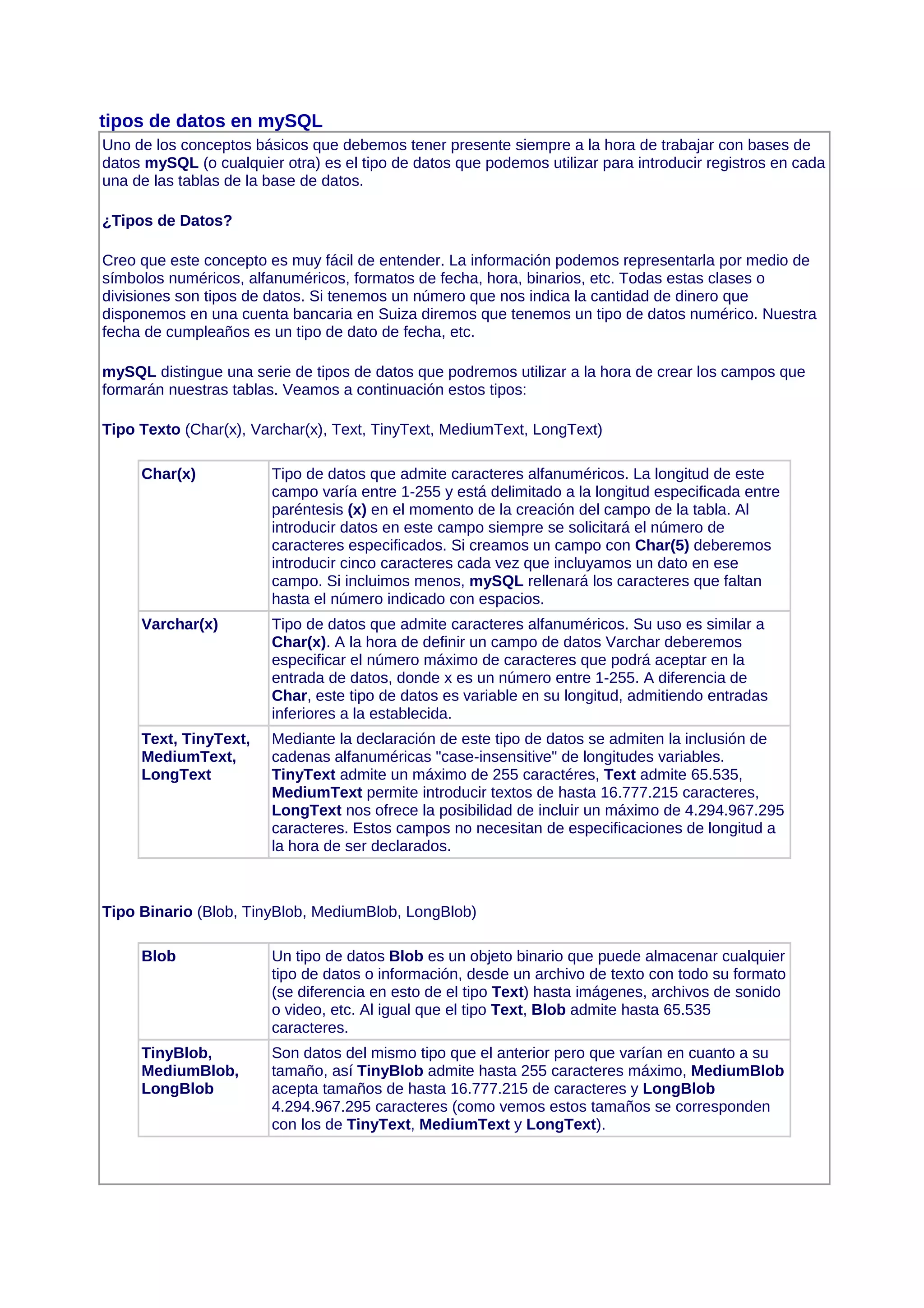 Temario:Tipos de datos blob y text.