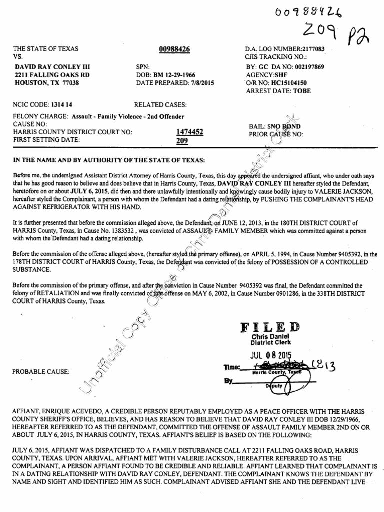 David Ray Conley III Criminal Complaint - Felony Domest Violence | PDF