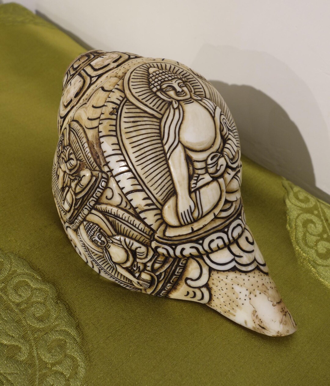 Tibetan Carved Buddhist Conch Shell Trumpet featuring Lord Vishnu ...