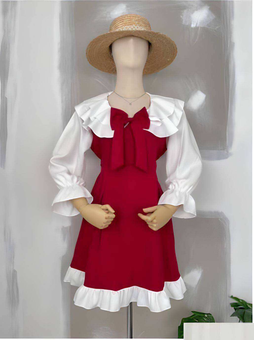 Flounce-trimmed jersey dress - Round neck - Sleeveless - White ...