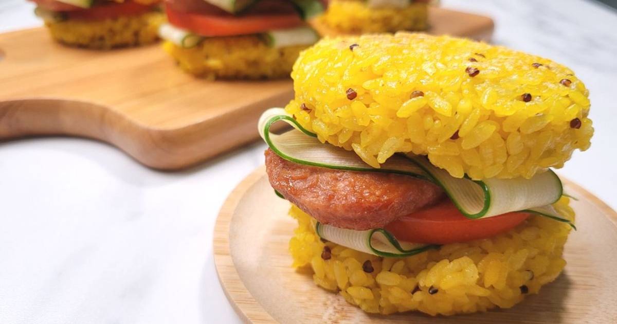 OMNI!PORK新豬肉 ~超簡單蔬食料理!新餐肉薑黃米香堡 食譜與作法 by 小圓姐姐愛料理 - Cookpad