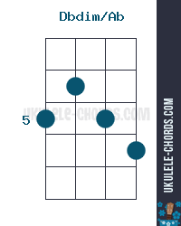 Dbdim/Ab (C#dim/Ab) Slashed Ukulele Chord - D-Tuning