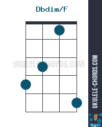 Dbdim/F (C#dim/F) Slash Ukulele Akkord - D-Tuning
