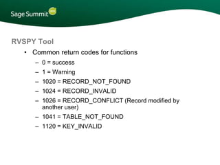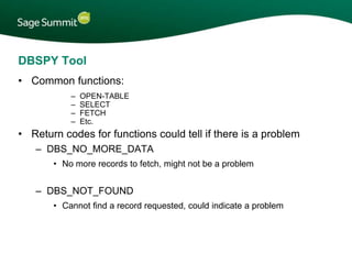 Technical tour of diagnostic tools: DBSpy - Sage 300 Support and ...