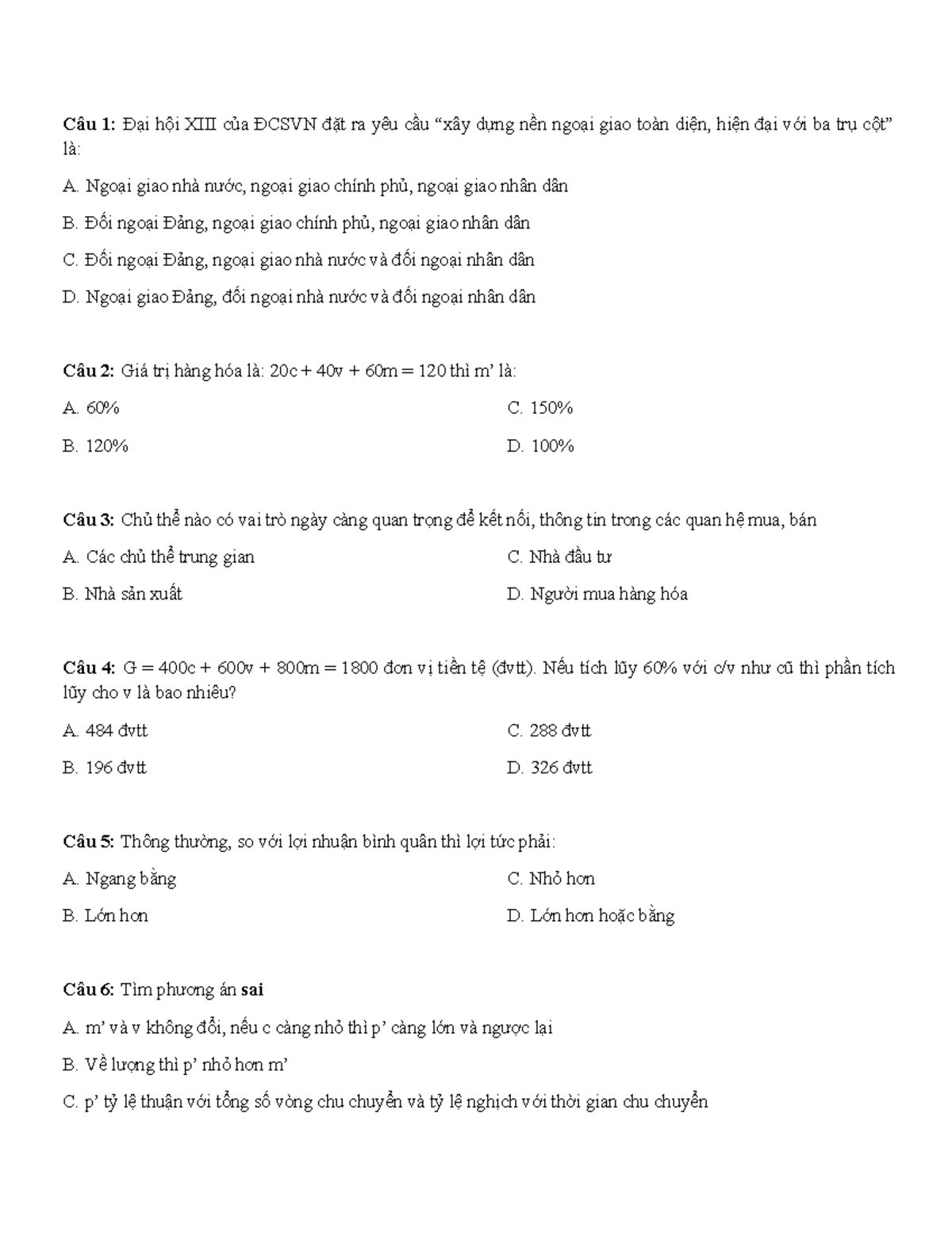 Ôn Tập Kiến Thức Kinh Tế Chính Trị - ĐCSVN - Studocu