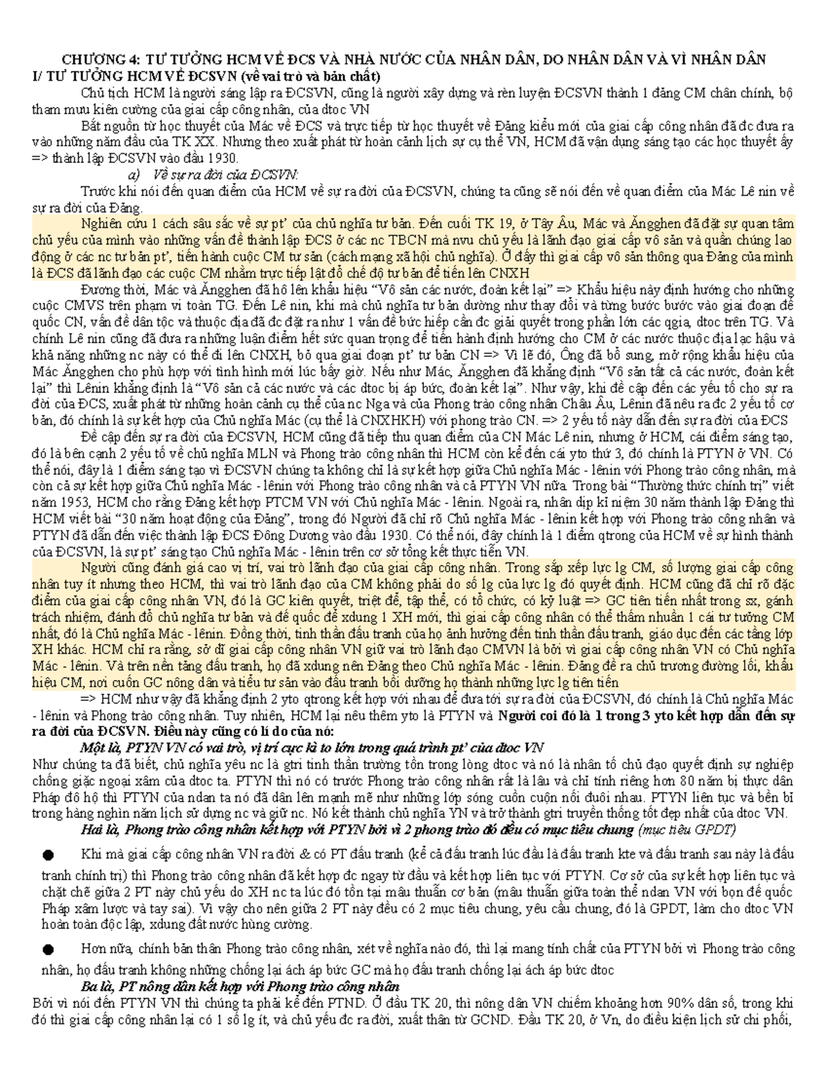 CHƯƠNG 4: TƯ TƯỞNG HCM VỀ ĐCSVN VÀ NHÀ NƯỚC CỦA NHÂN DÂN - Studocu