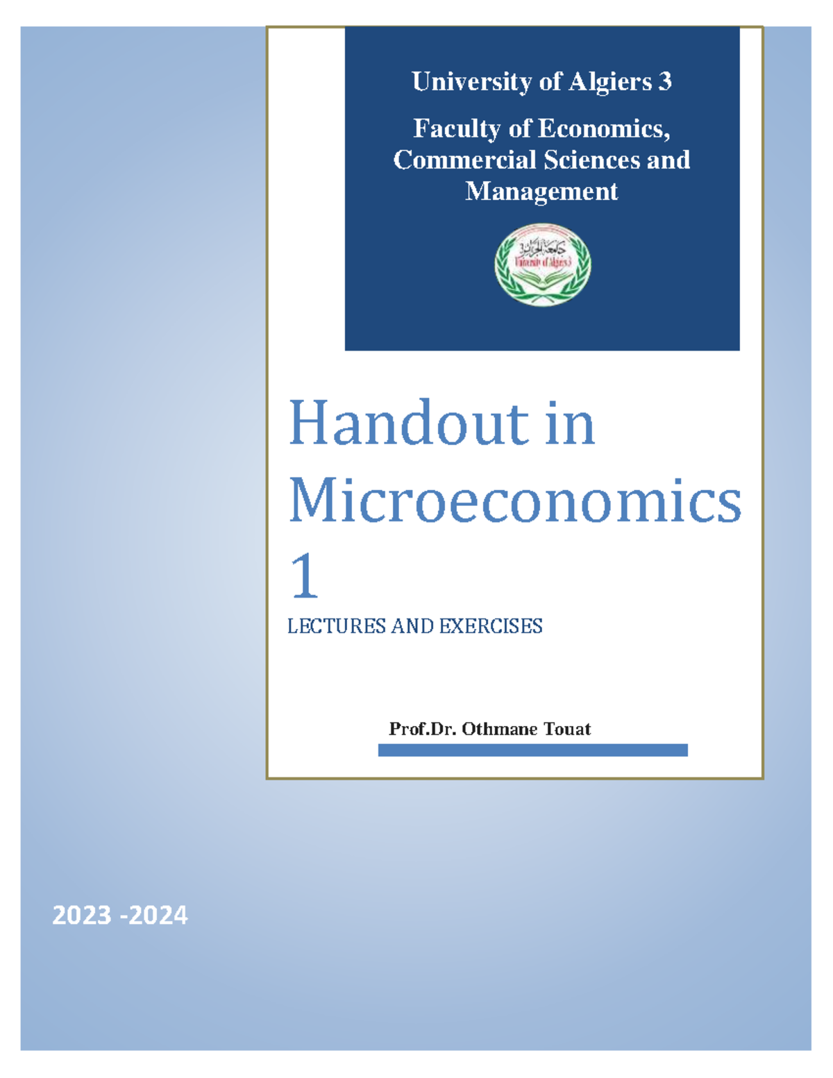 Microeconomics 1 (ECON101) Lecture Handout & Exercises - 2023 - Studocu