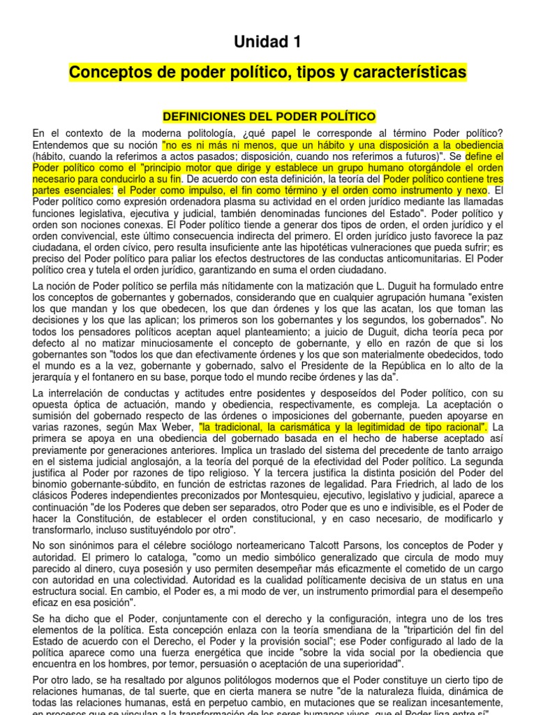 Unidad 1 Conceptos de Poder Politico, Tipos y Caracteristicas | PDF ...