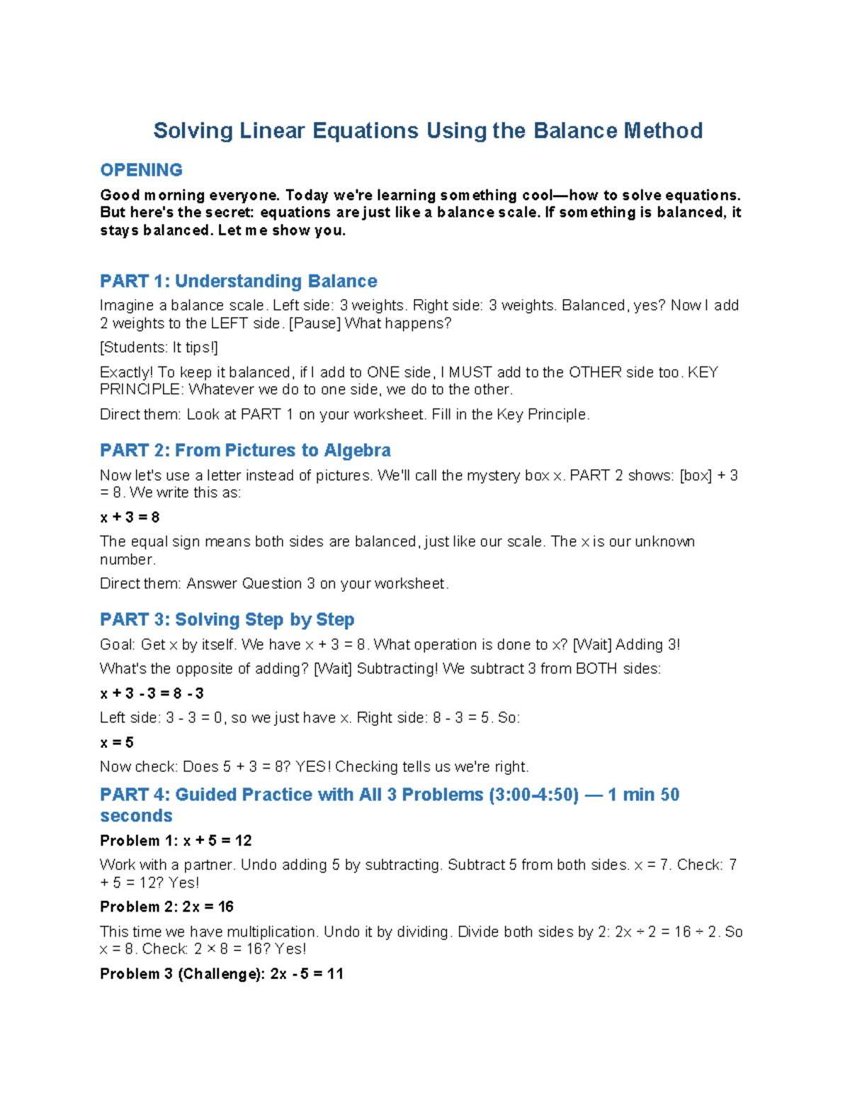 Solving Linear Equations: The Balance Method (Script - 90328) - Studocu