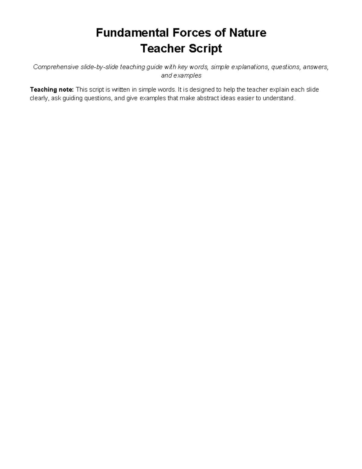 Fundamental Forces of Nature: Teacher Script & Key Concepts - Studocu