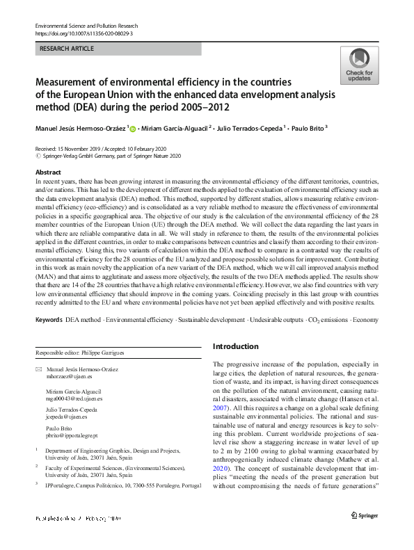 (PDF) Measurement of environmental efficiency in the countries of the ...