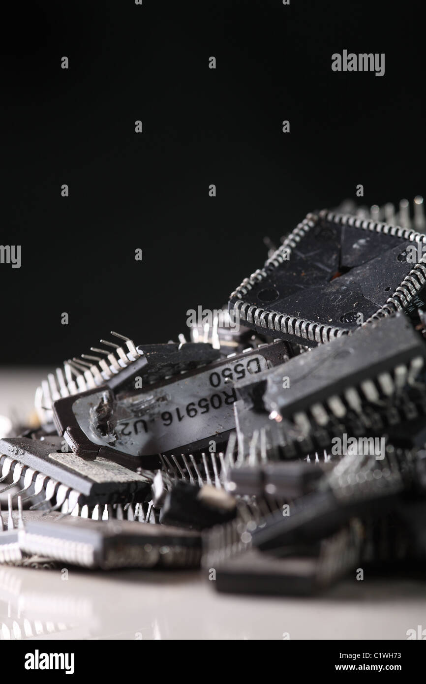 used and broken computer chips Stock Photo - Alamy