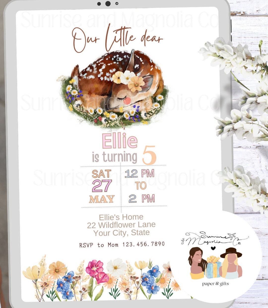 ISLA Little Dear Invitation Deer Invitation Woodland Girls Birthday ...