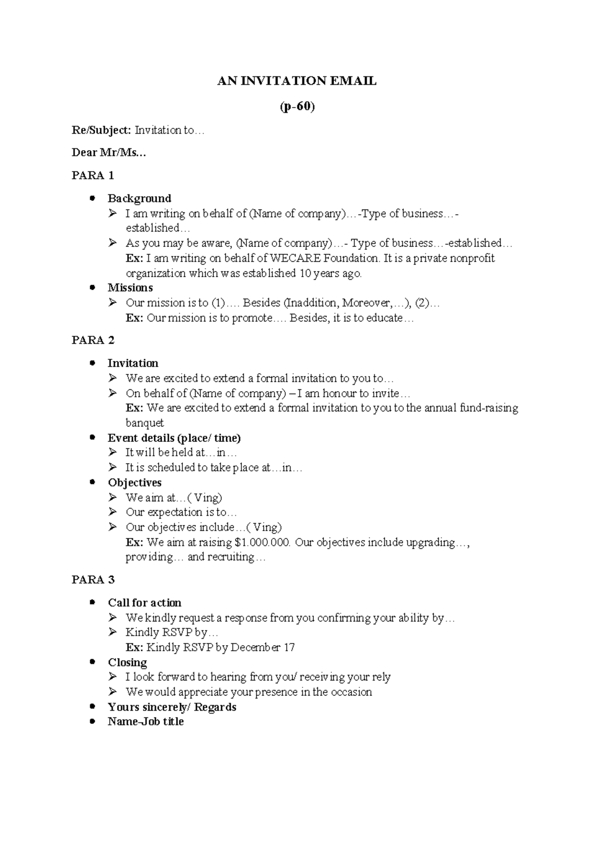 AN Invitation Letter - AN INVITATION EMAIL (p-60) Re/Subject ...