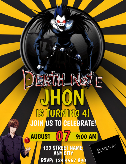 Editable Death Note Birthday Party Invite Template | PosterMyWall