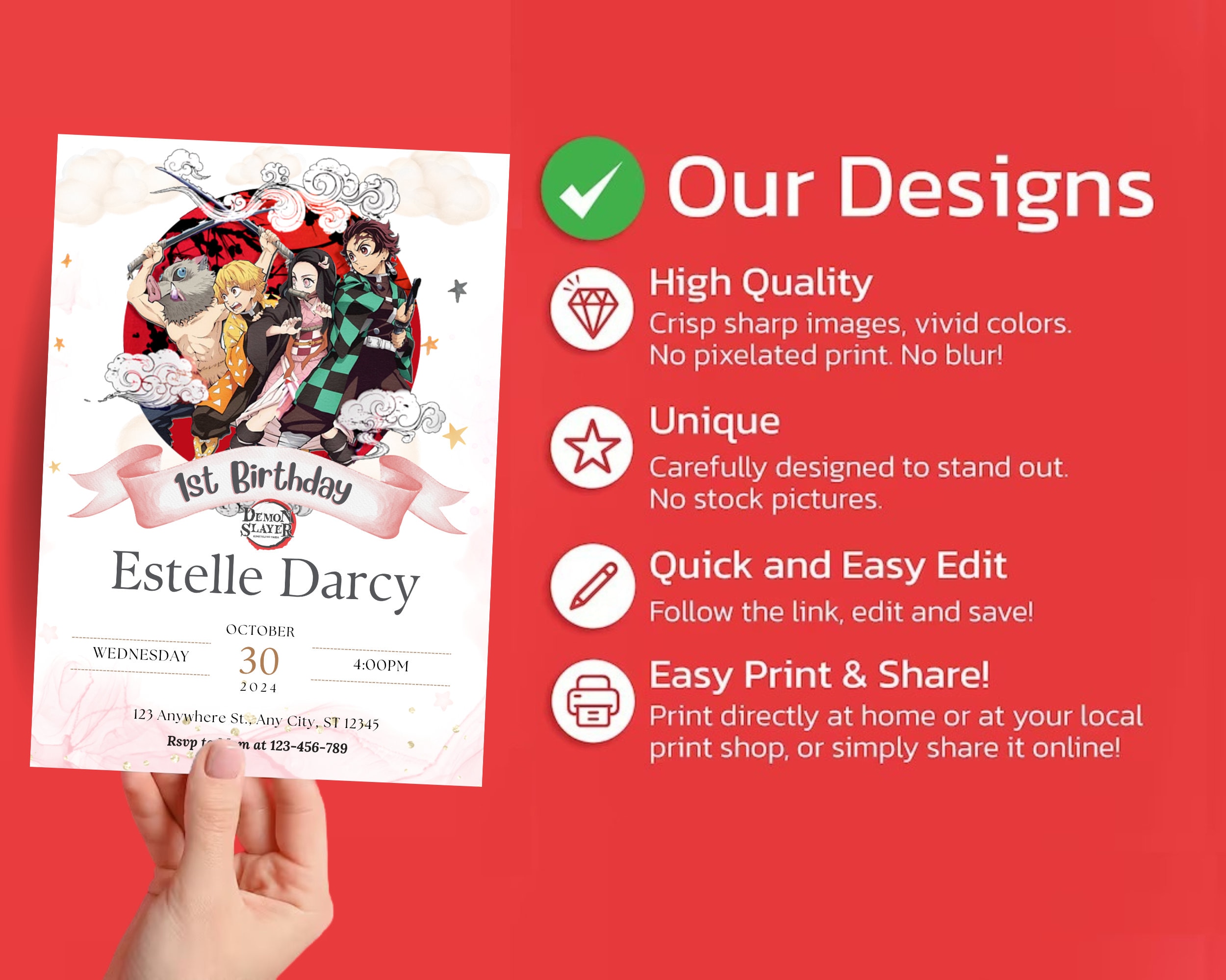 Anime Demon Slayer Birthday Invitation Customizable Anime Party Invite ...