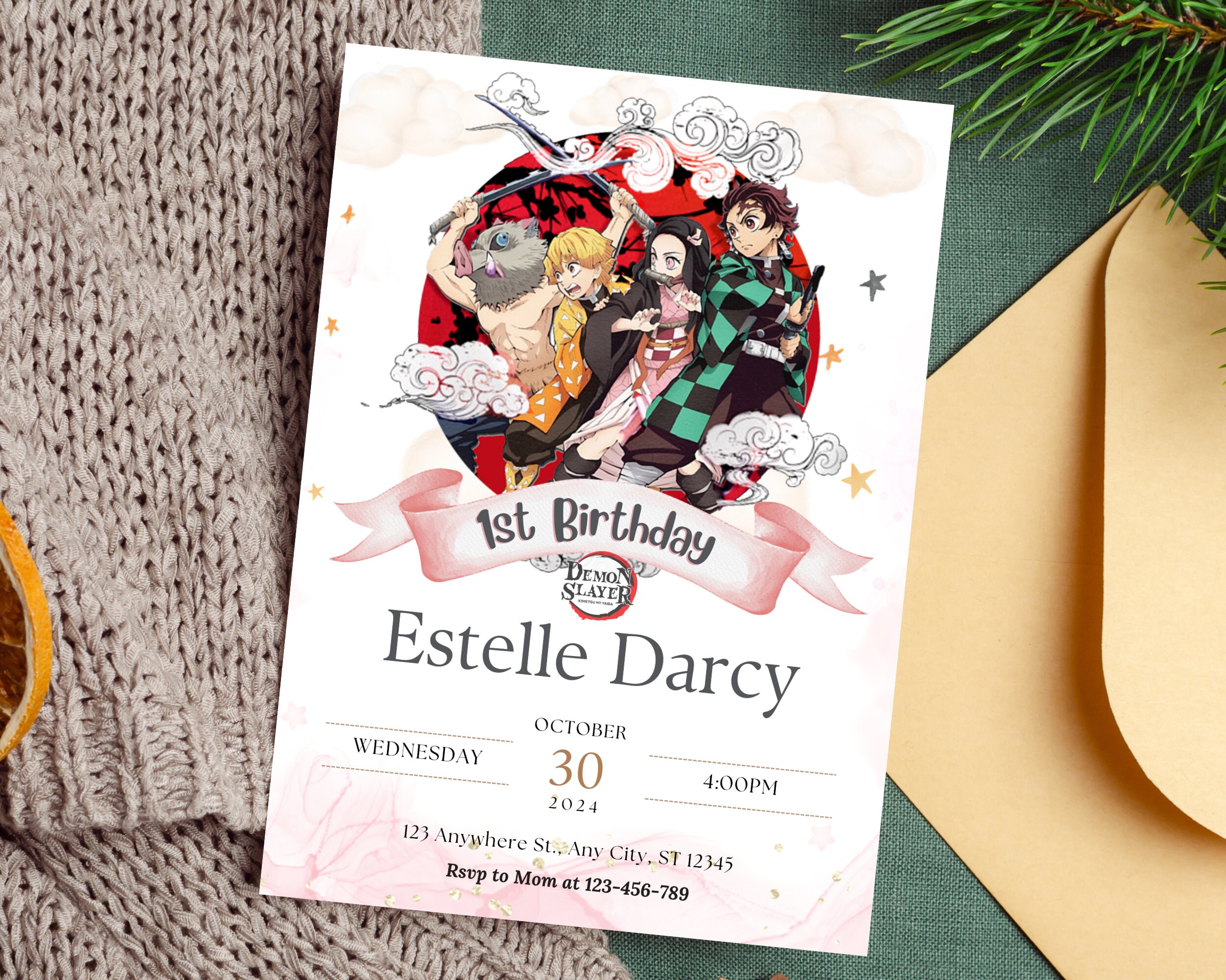 Demon Slayer Birthday Invitation, Birthday Invitation Digital ...
