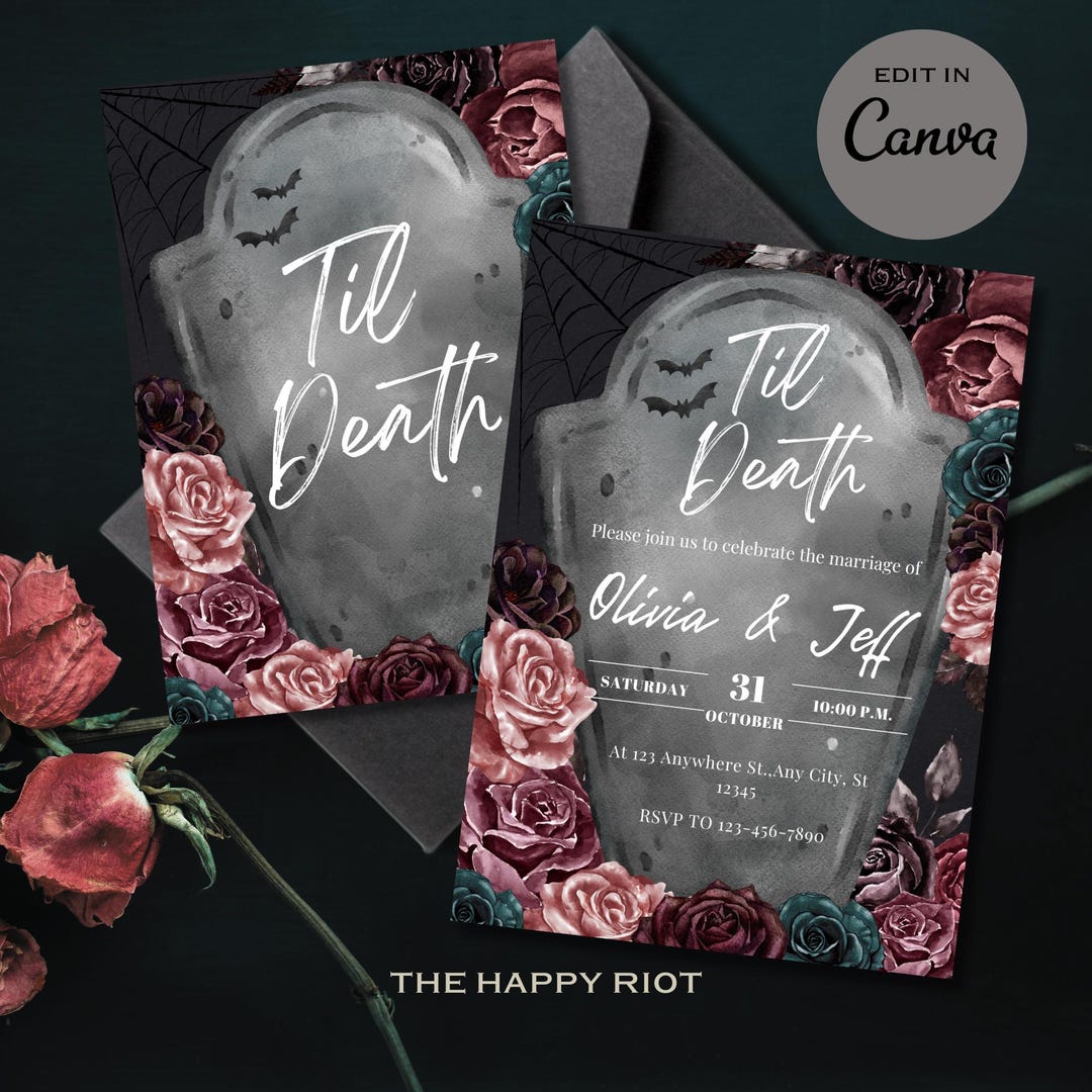 Til Death Wedding Invitation Template, Editable Wedding Invite, Gothic ...