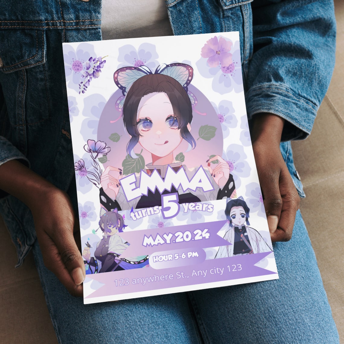Demon Slay Anime Birthday Invitation, Butterfly Birthday Party Invite ...