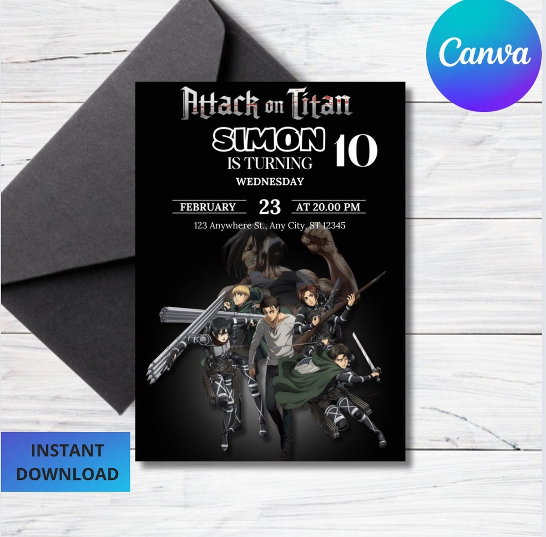 Editable Attack on Titan Birthday Invitation, Dark Theme, Printable ...