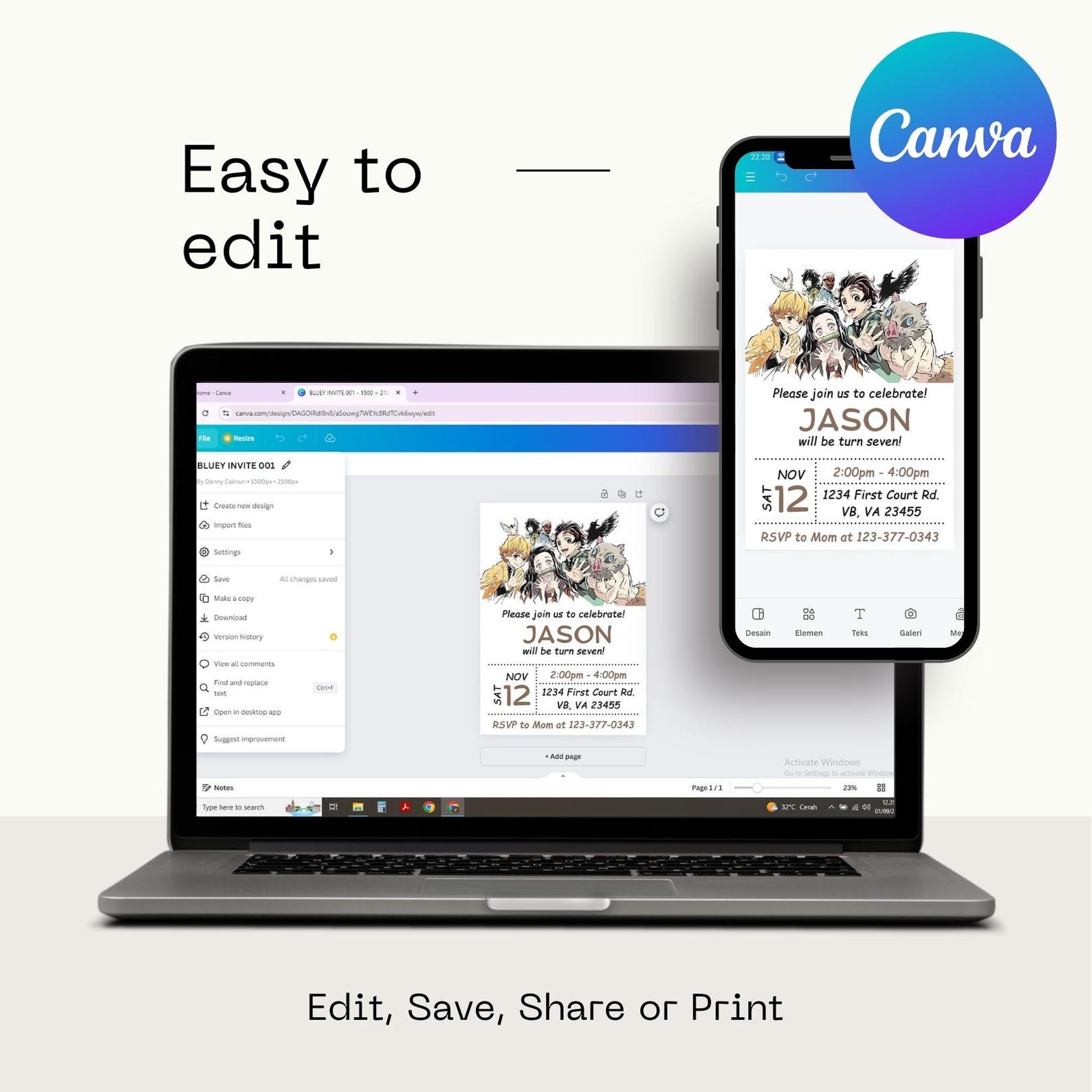 Editable Demon Slayer Invitation, Digital Demon Slayer Birthday ...