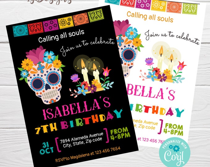 Editable Day of the Dead Party Invitation, Day of the Dead Costumes and ...