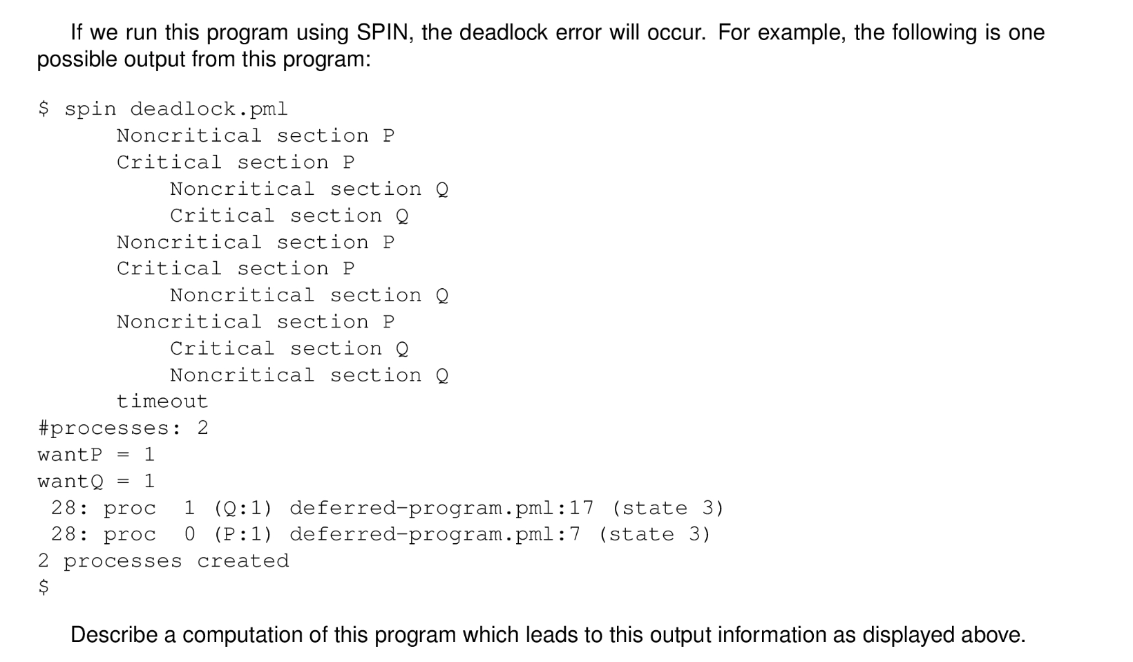 Solved If we run this program using SPIN, the deadlock error | Chegg.com