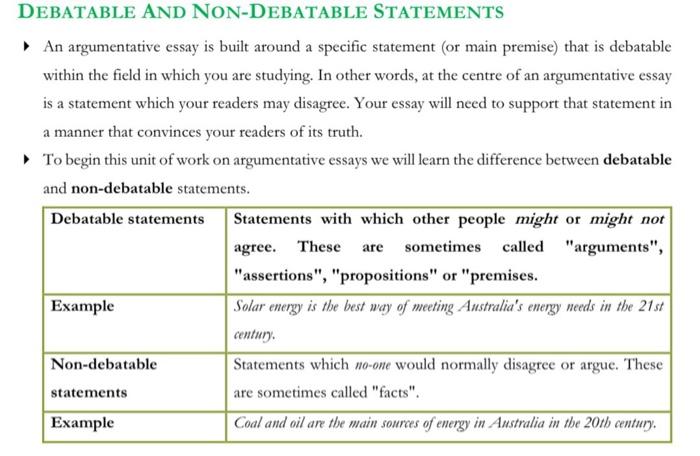 Understanding Debatable vs. Non-Debatable Statements in Essays | Course ...