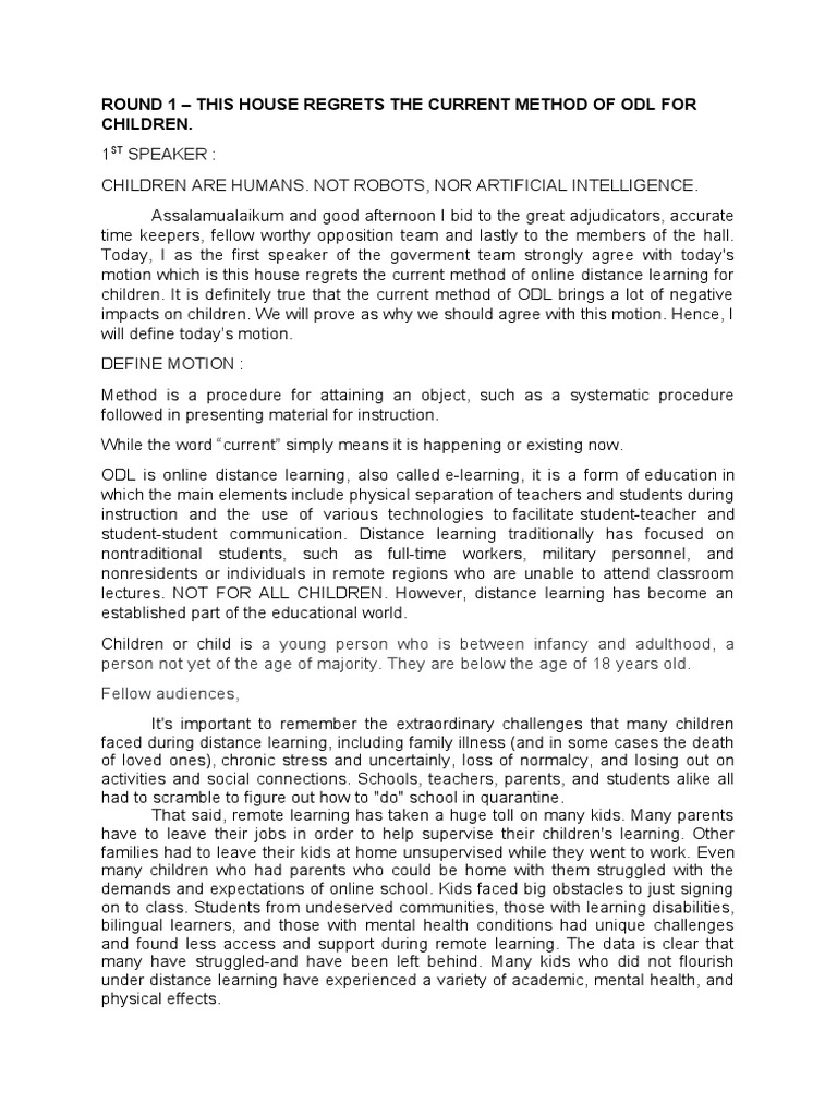 1ST Speaker - Debate Speech - Example | PDF | Senses | Distance Education