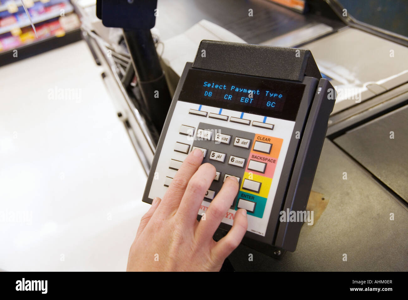 Person using debit card transaction machine Stock Photo - Alamy