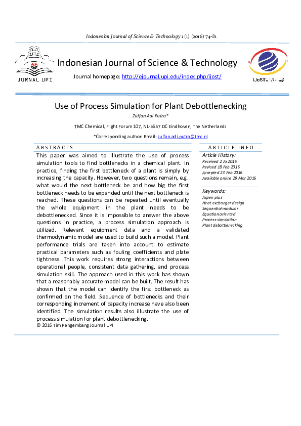 (PDF) Use of Process Simulation for Plant Debottlenecking