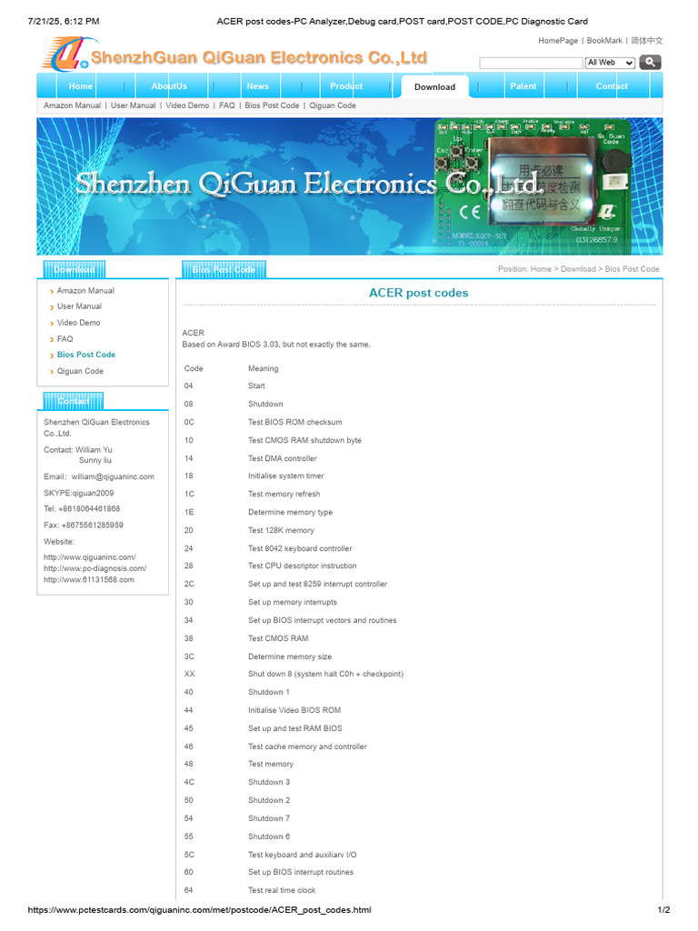ACER Post Codes-PC Analyzer, Debug Card, POST Card, POST CODE, PC ...