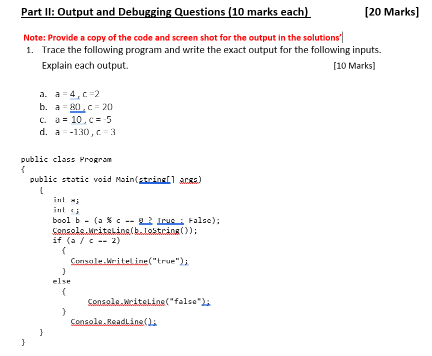 Solved [20 Marks) Part II: Output and Debugging Questions | Chegg.com