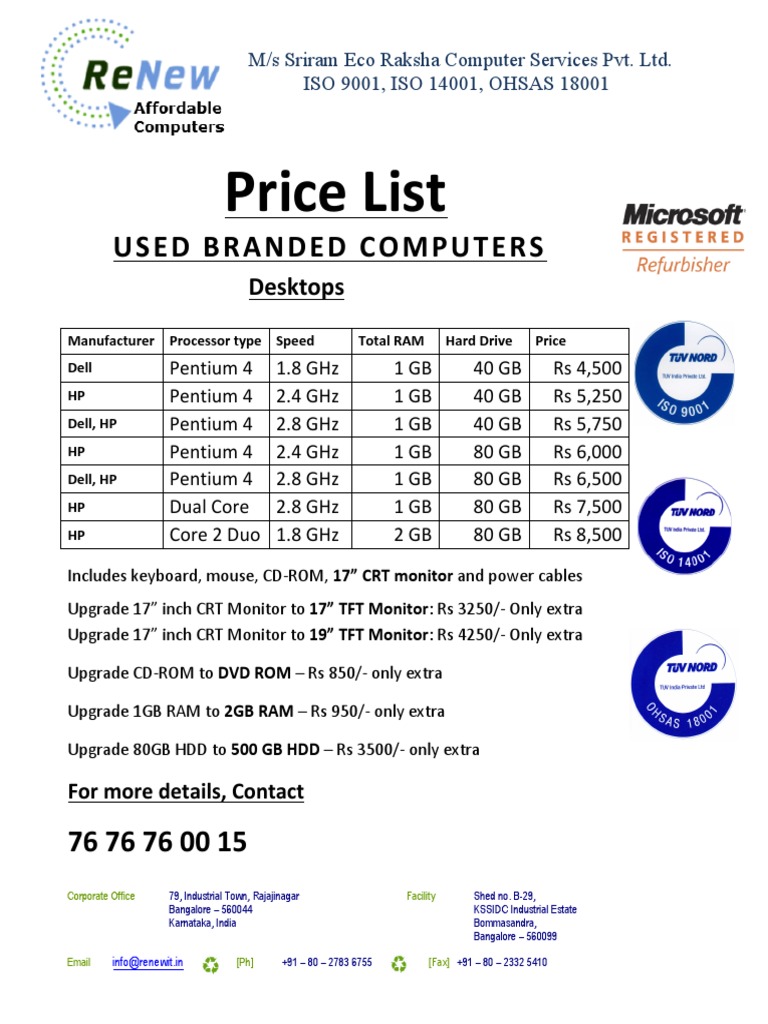 Used Branded Computers Price List | PDF