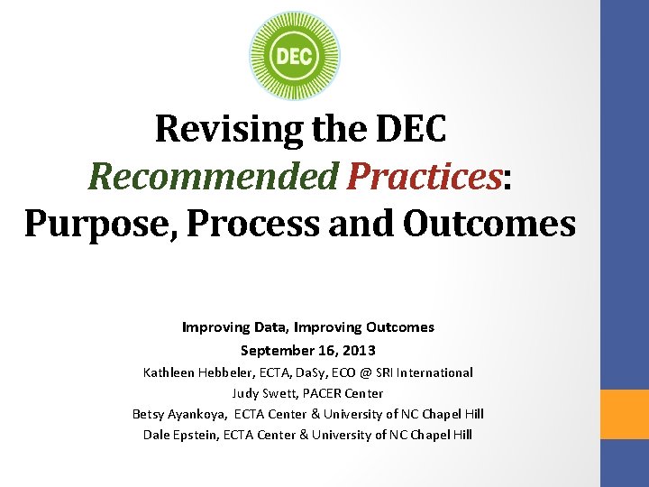 Revising the DEC Recommended Practices Purpose Process and