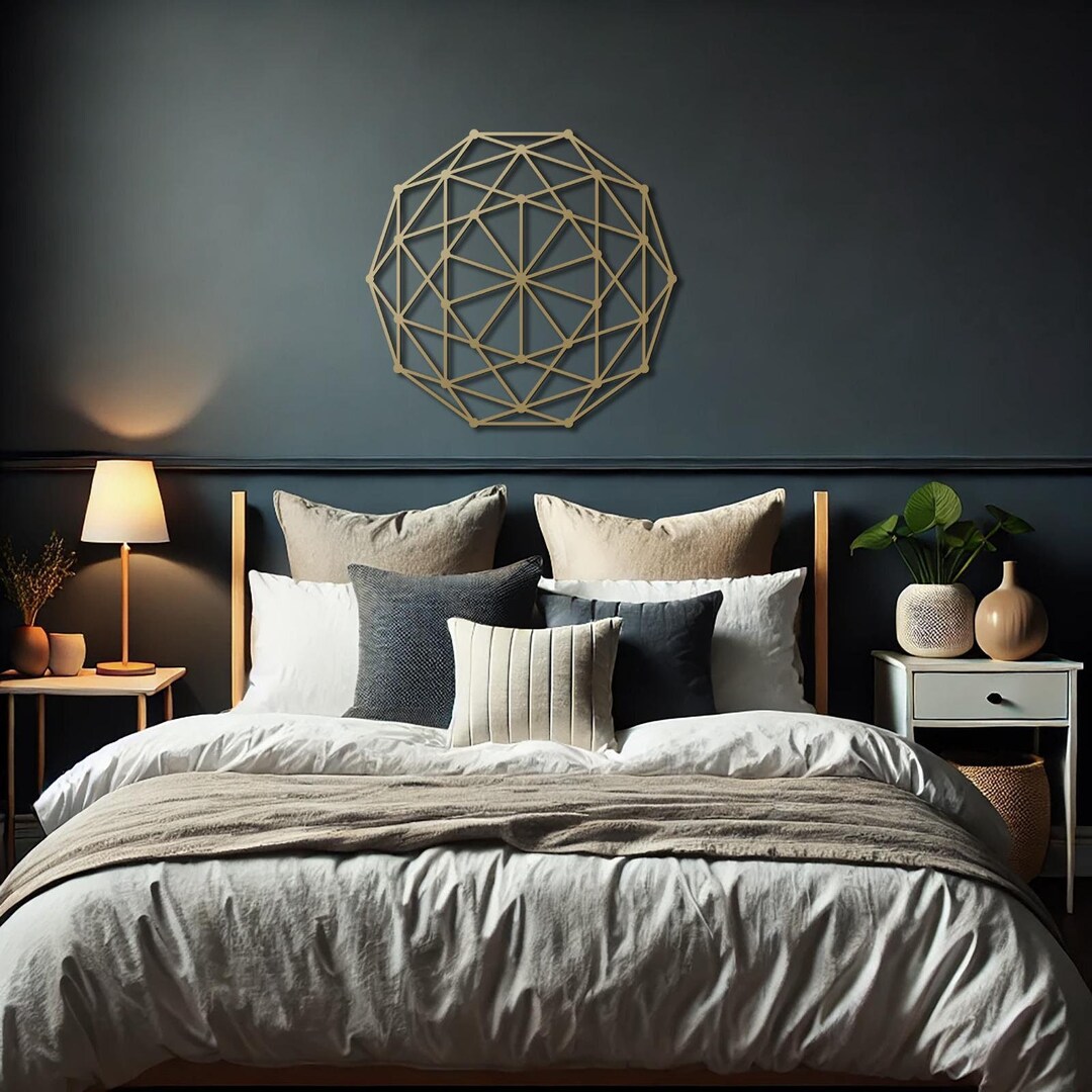 Arte de parede em metal decagonal dourado: decoração de geometria ...