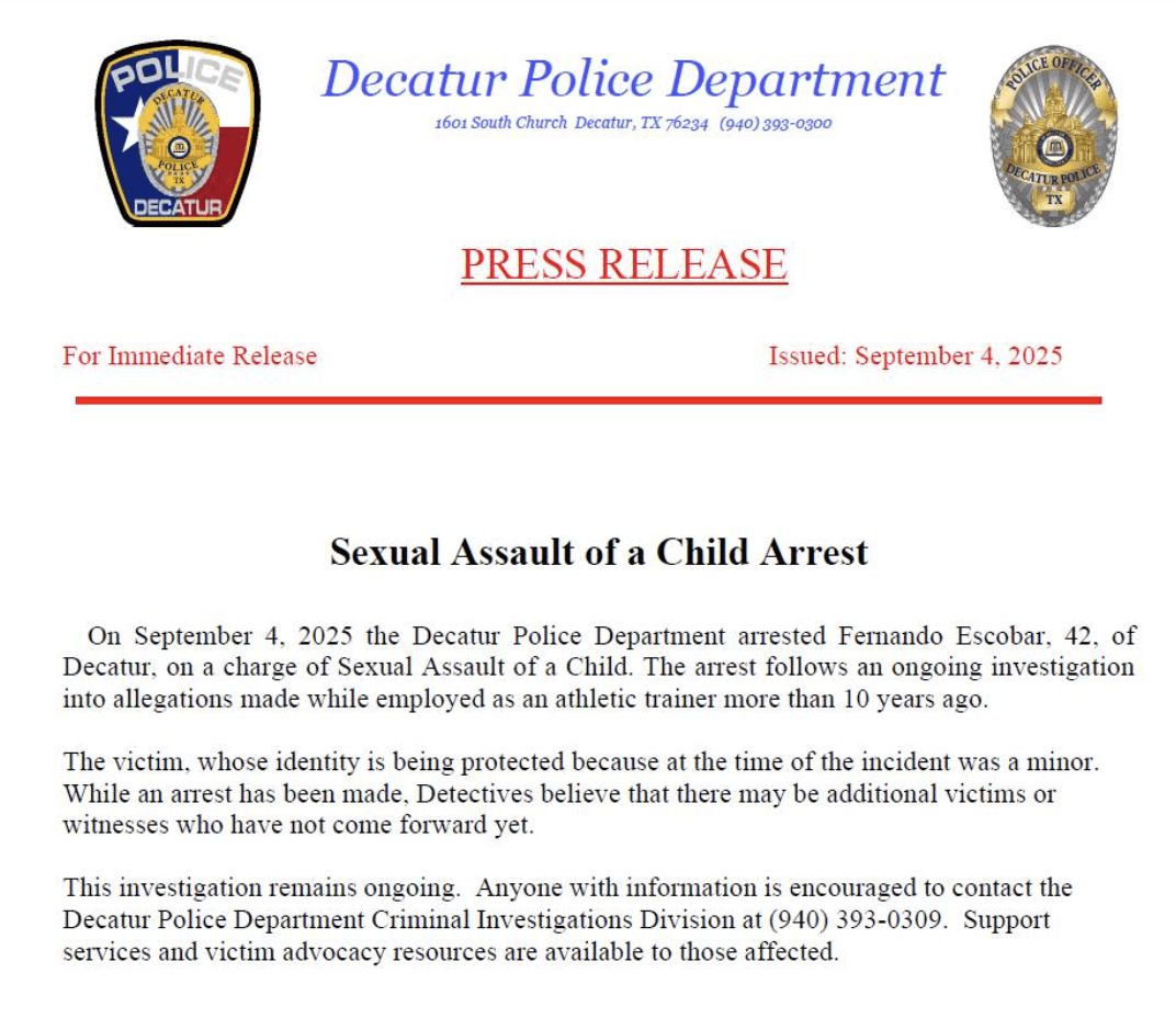 Decatur ISD Trainer Accused of Sexually Assaulting Student Athlete ...