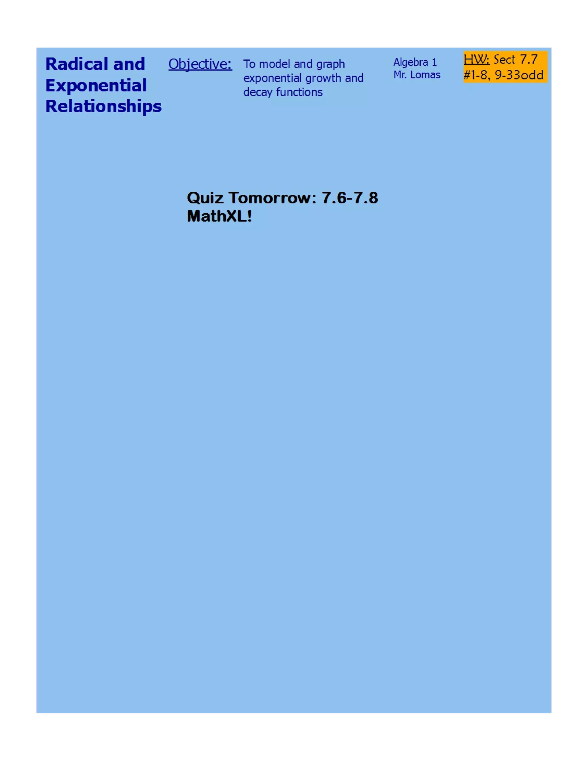 PPT - Exponential Growth & Decay in Texas Algebra I Lesson 47 ...